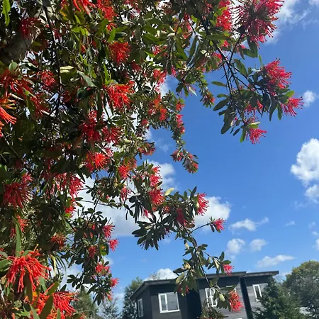 Situada a 7 km de la Gruta de Lourdes, la Cabanas Los Aromos De Puerto Varas, invita a los huéspedes a relajarse en un patio.